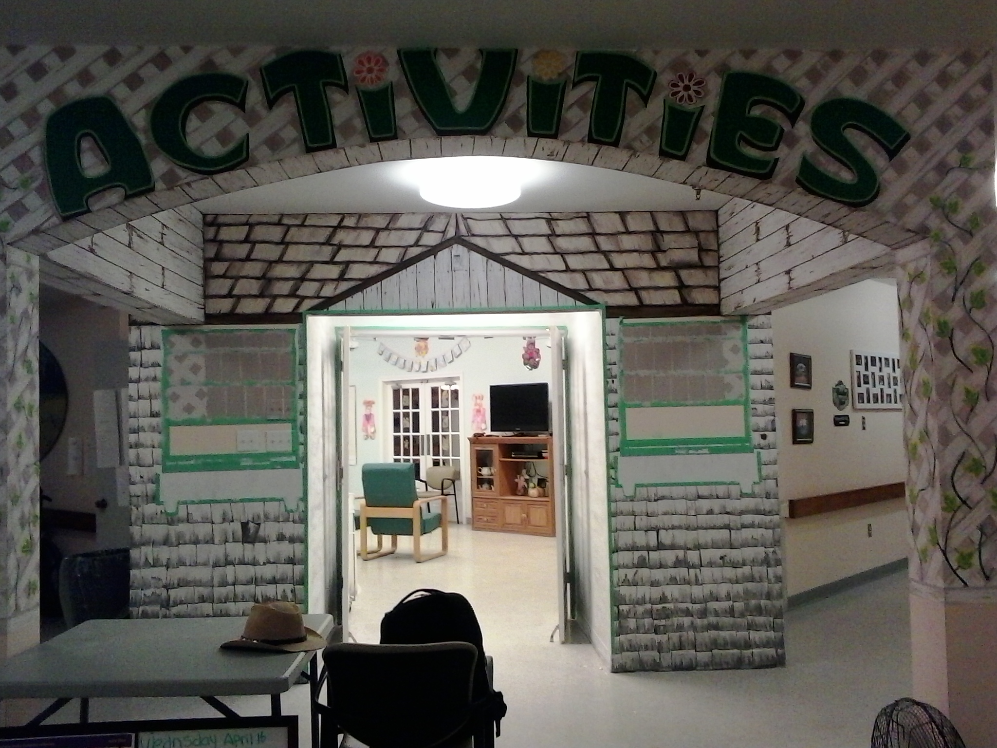 The inside of the arch behind the “Activities” sign