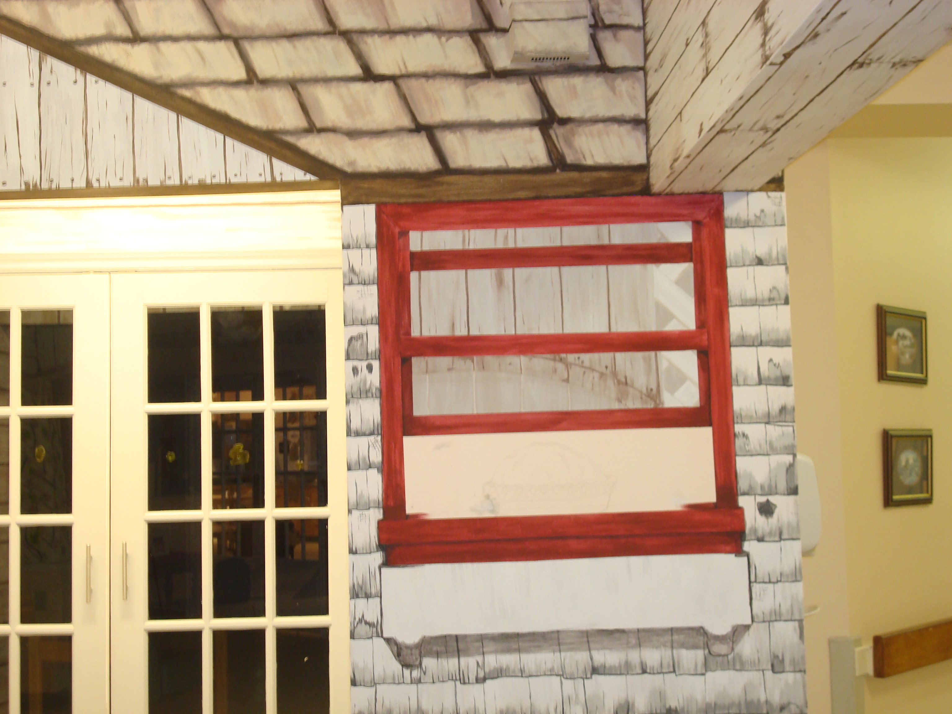 The completed mural: close-up of foyer and doorway