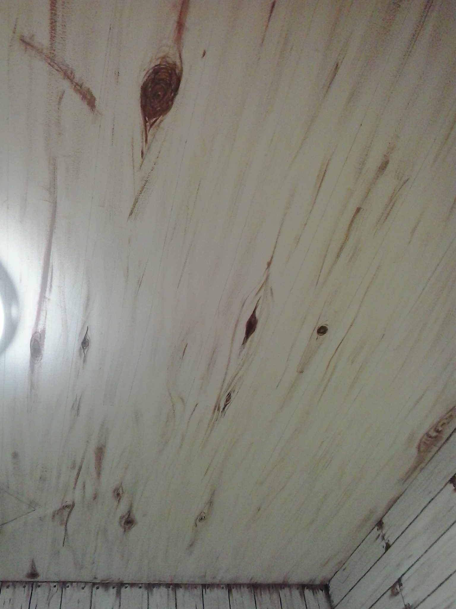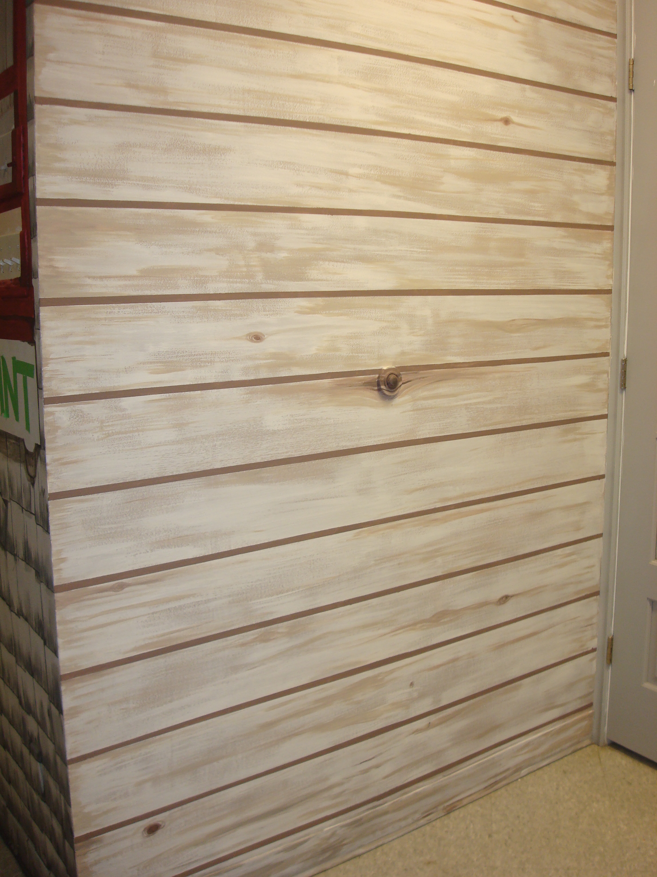Left inner porch wall/foyer with knots and scuff marks at the bottom