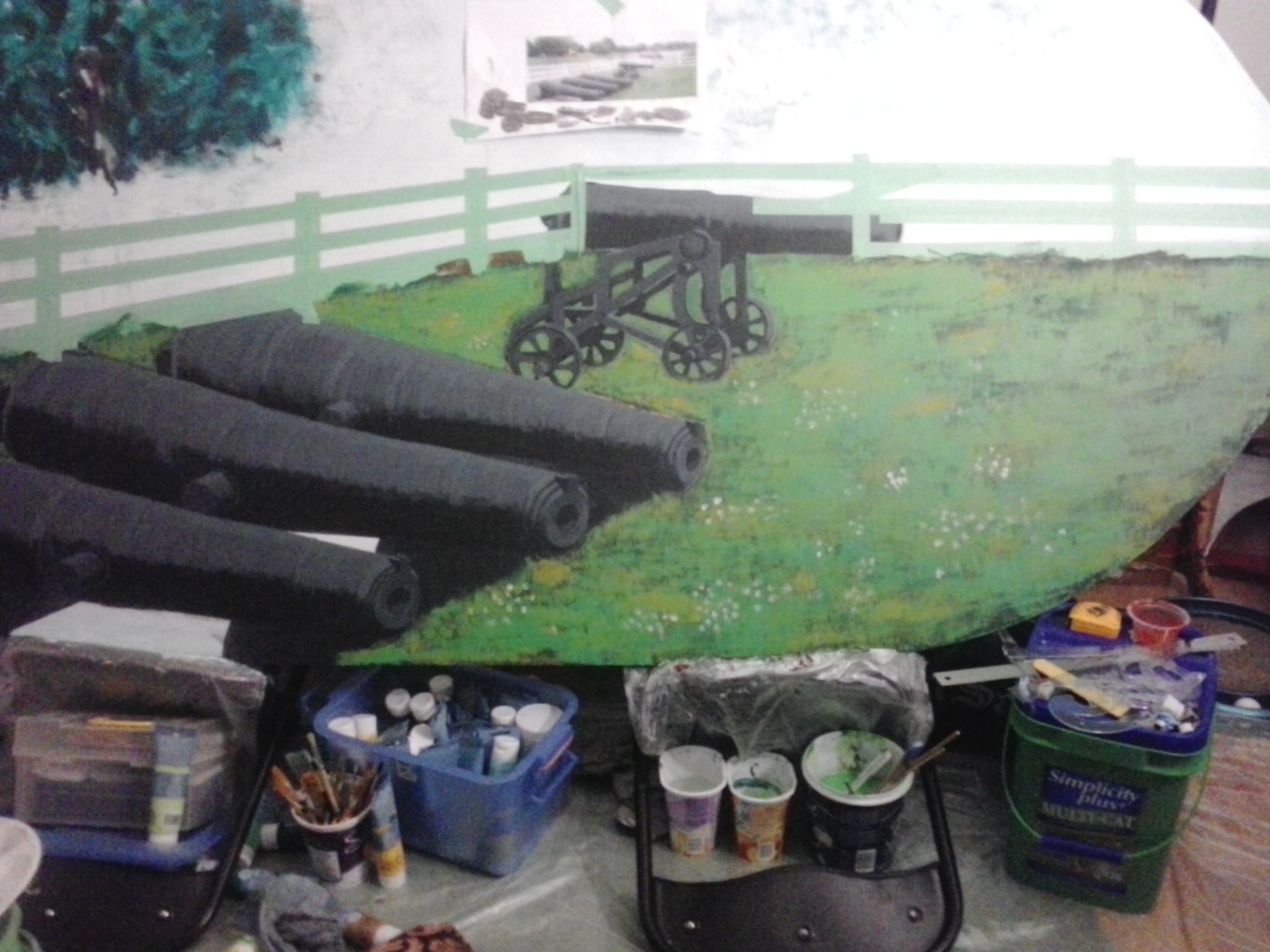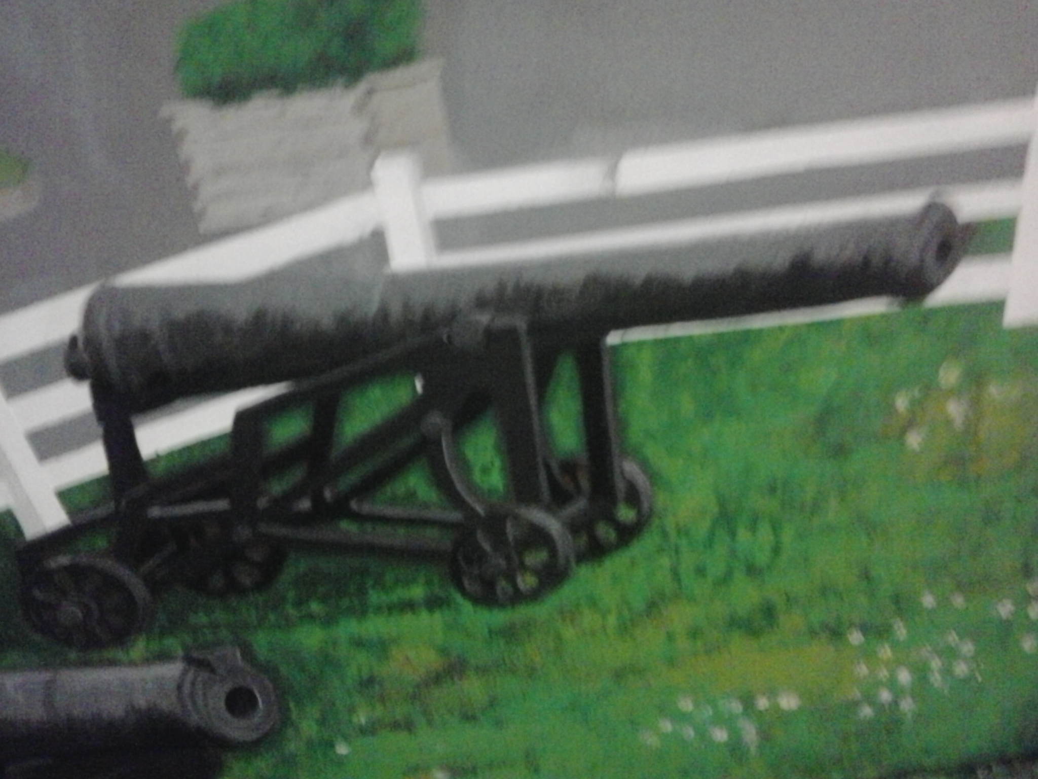 Then I started on the new cannons, much smaller and placed in the bottom third of the painting, instead of in the bottom half.