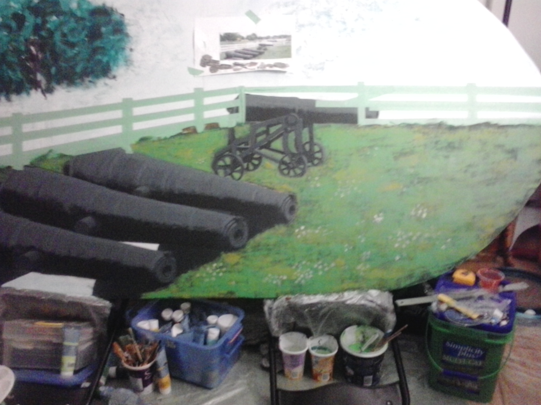 When I started out, I figured I’d make the cannons a central image, and based it on a photo I had taken with the cannons close up and forward.