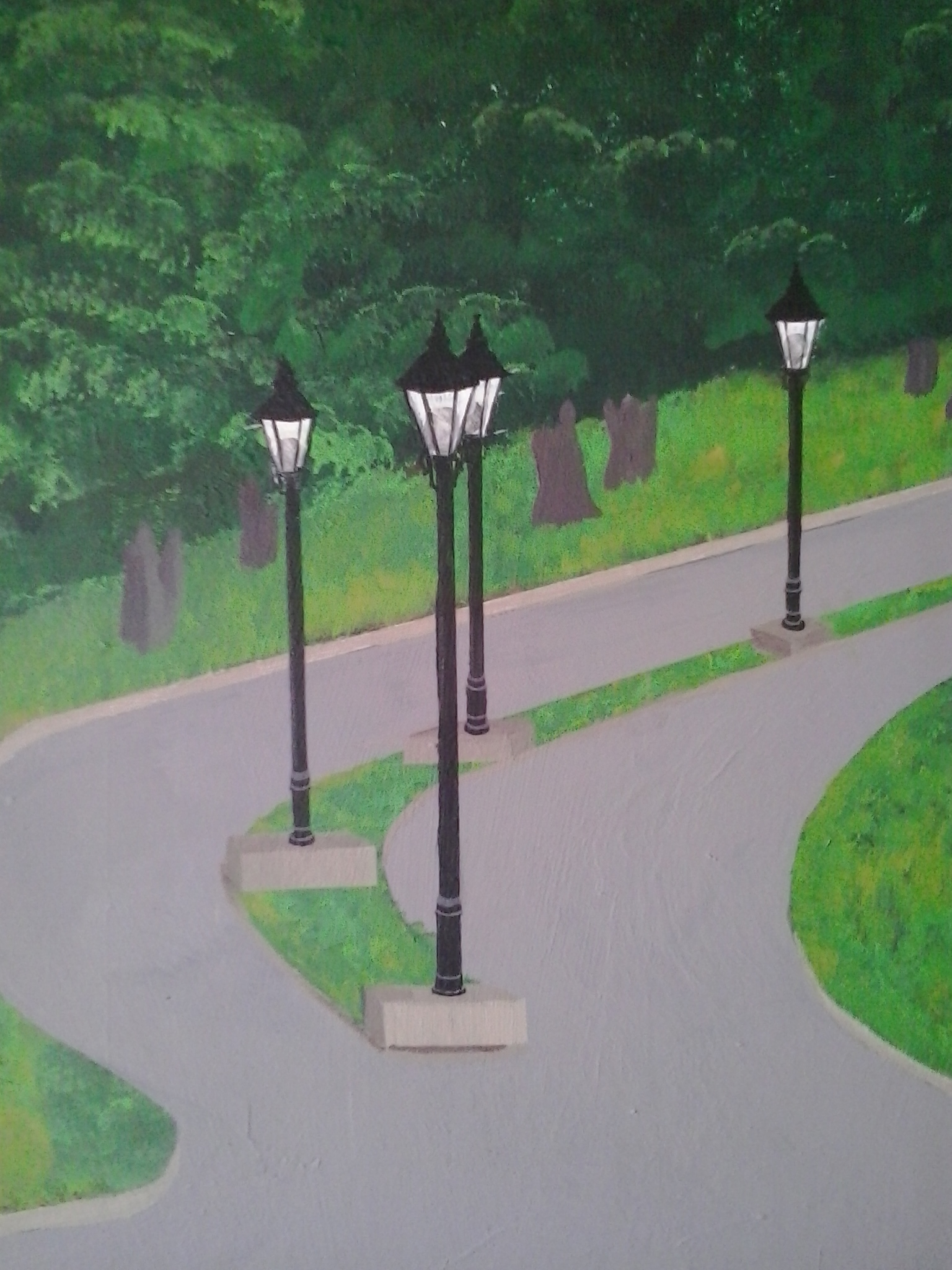Next, I worked on the rocks around the shore of the Gulf of St. Lawrence, in the Bay that leads to the Charlottetown Harbour, also visible from the park. I added the lamps and detailed them.