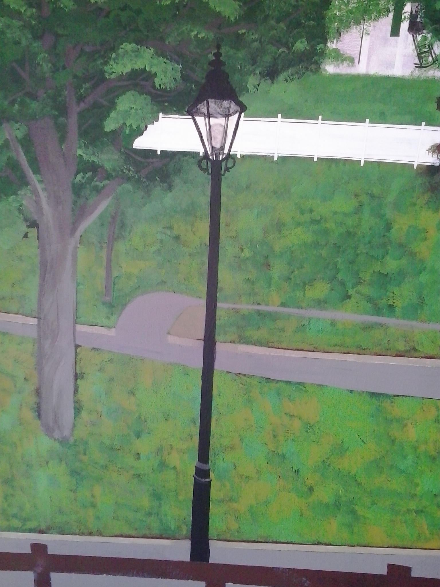 Then, I did the viewing platform, added plants and flowers to the lamp post bases…