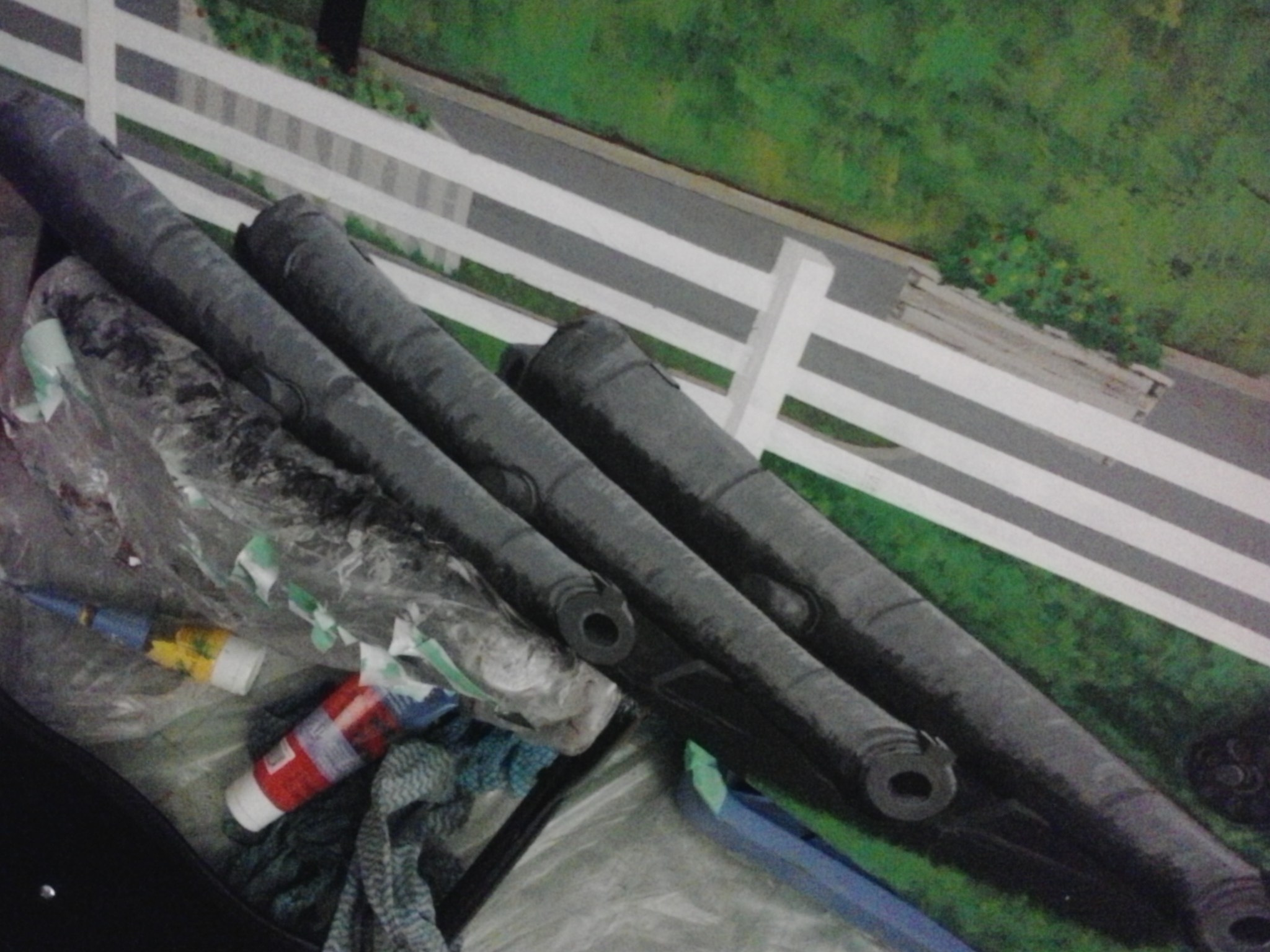2014-10-19 00.20.19I changed the proportions a bit, so they look longer and thinner up close, but fit nicely in the bottom; I also changed some of the proportions of the fence so I could fit the cannons into the bottom third, so you get more of a view from up looking down.
