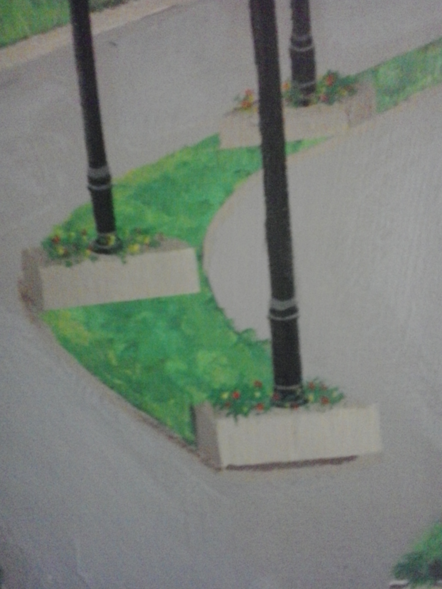 Then, I worked on the flower boxes and the planters. Each lamp had flowers at the base. I decided not to include the planters that were used during summer to divide the left lane in two so that there would be a bicycle lane, because it would make the road too crowded and the lanes too narrow.
