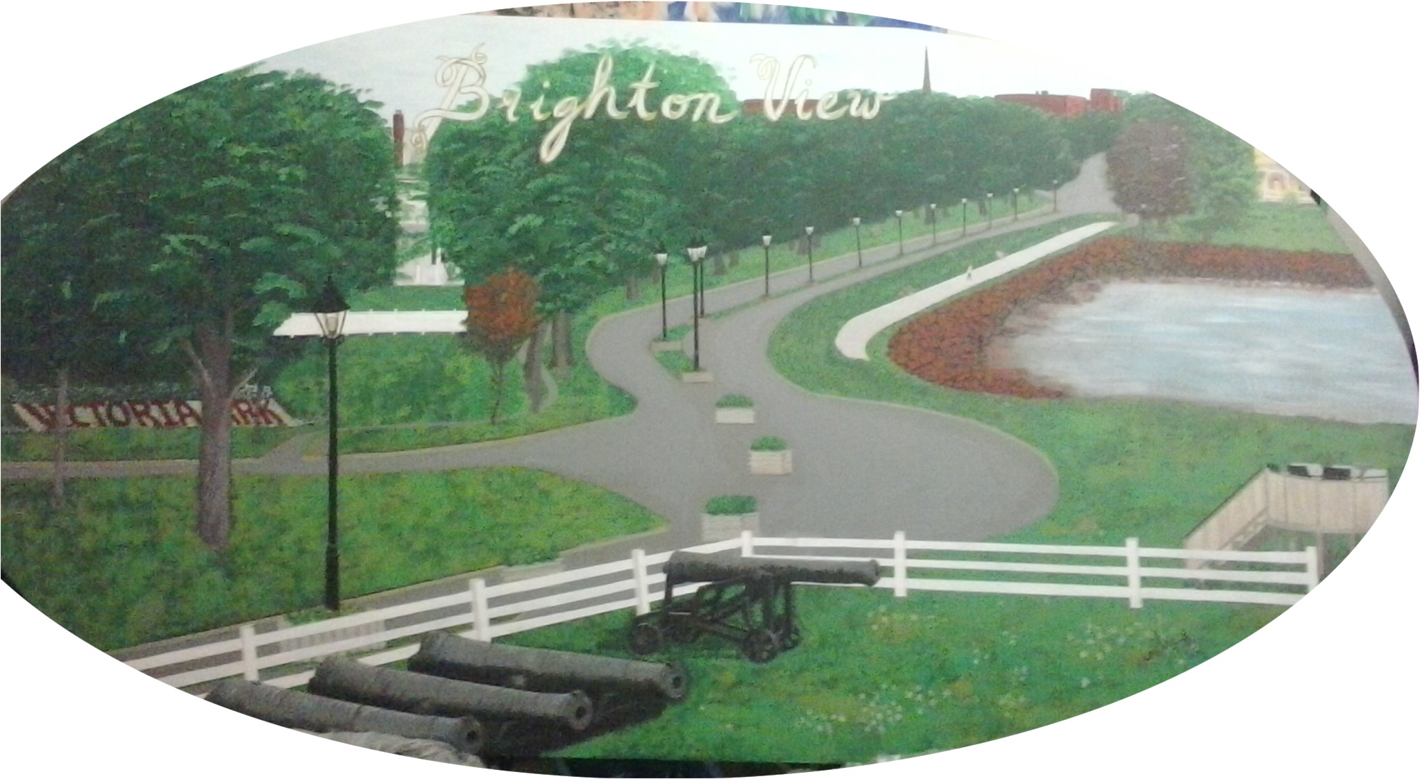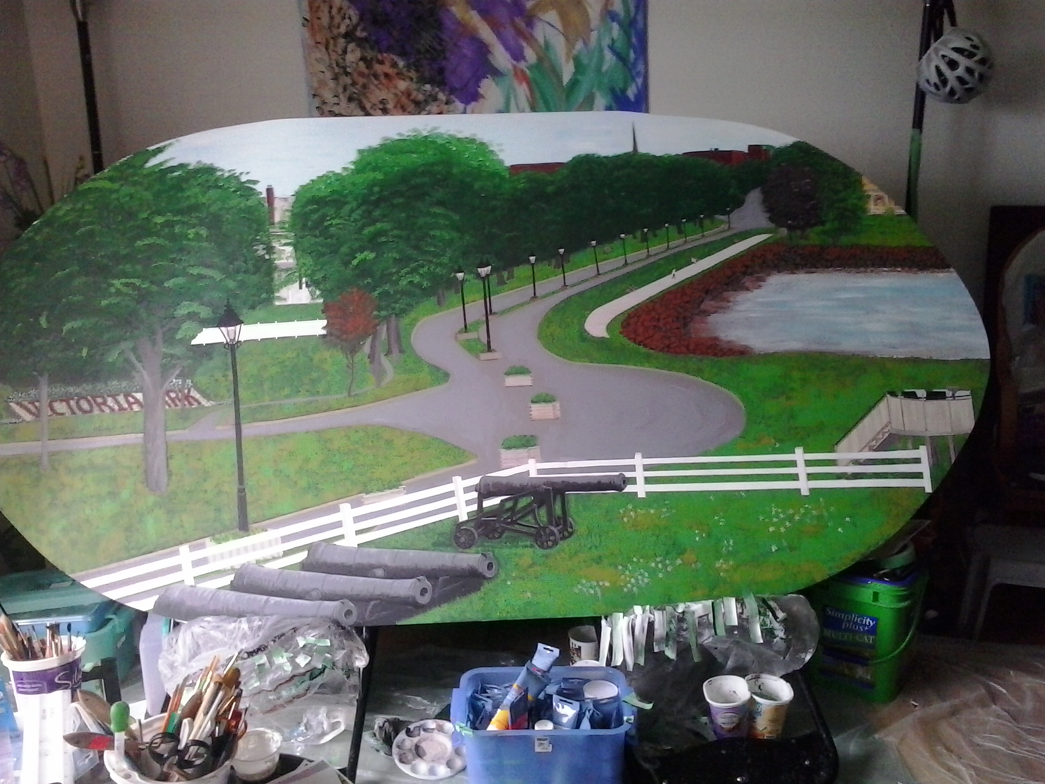 The Brighton View Landscape can be viewed at the Garden Home, North River Road, Charlottetown, along with my mural of the old farmhouse. I need to take a photo of this with a real camera with proper lighting.
