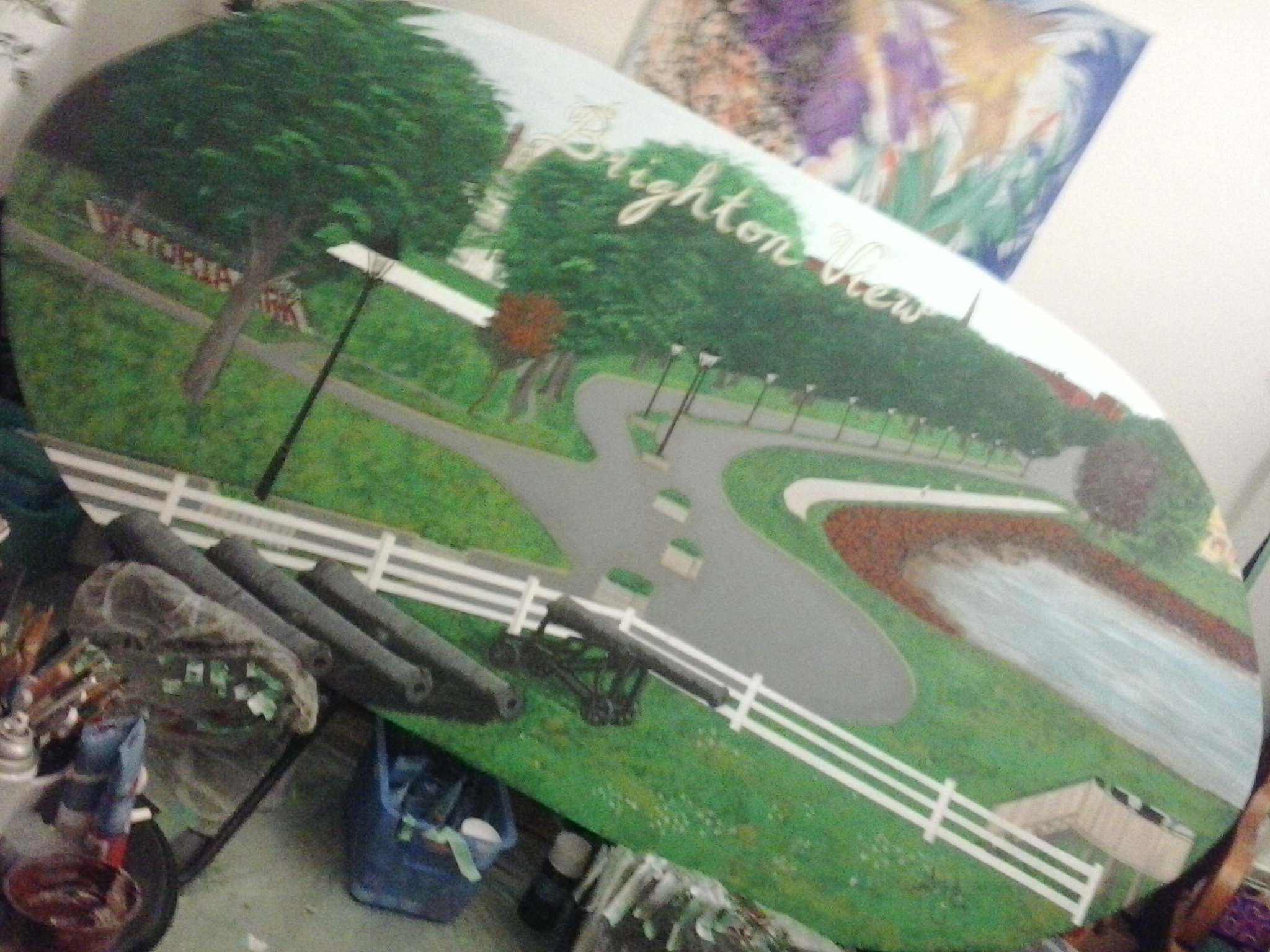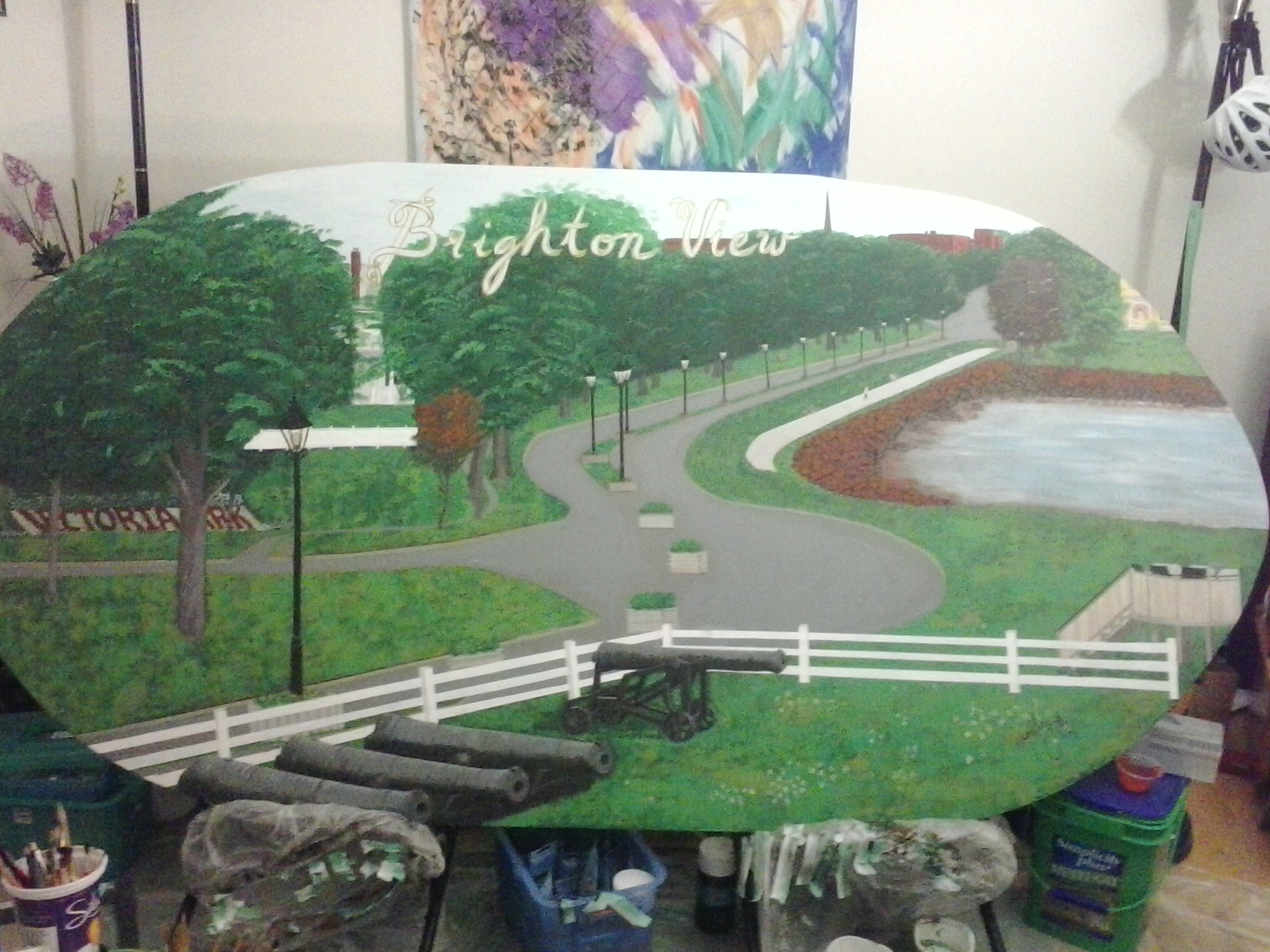 Here, in different stages, is the Brighton View Landscape painting I created for the Garden Home.